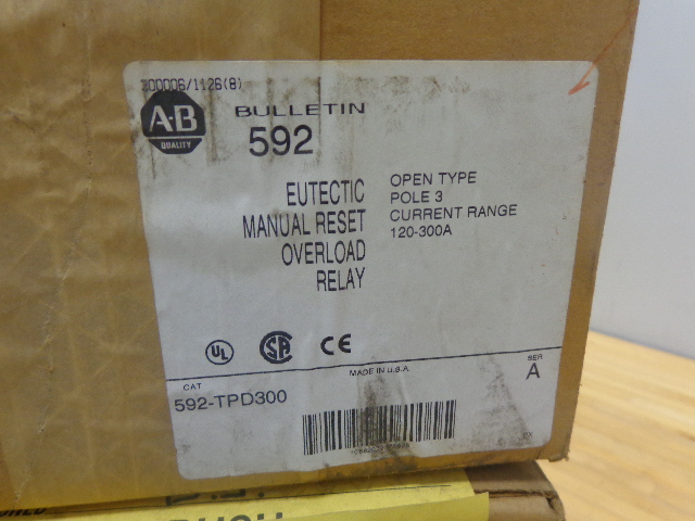 592-TPD300 ALLEN-BRADLEY, EUTECTIC MANUAL RESET OVERLOAD RELAY, OPEN TYPE, 3 POLE, 120-300 AMPS. SERIES A. BULLETIN 592